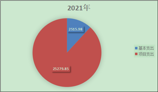 2021年本年支出合计27795.83万元,其中:基本支出2515.98万元,占9.05%;项目支出25279.85万元,占90.95%;上缴上级支出0万元,占0%;经营支出0万元,占0%;对附属单位补助支出0万元,占0%。