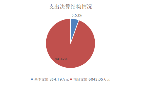 2021年本年支出合计6399.24万元,其中:基本支出354.19万元,占5.53%;项目支出6045.05万元,占94.47%;