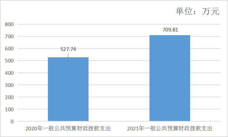 2021年一般公共预算财政拨款支出709.81万元,占本年支出合计的100%。与2020年相比,一般公共预算财政拨款支出增加181,57万元,增长34.37%。主要变动原因是职工人数增加。