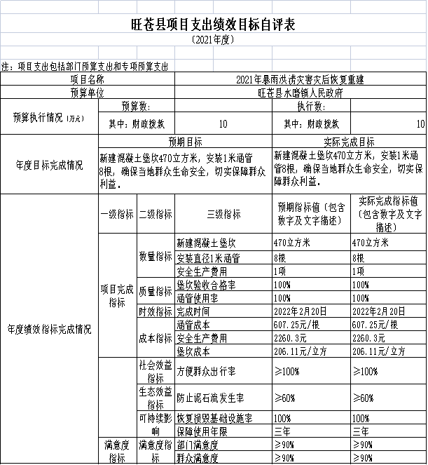 关于2021年暴雨洪涝灾害灾后恢复重建项目支出绩效自评报告