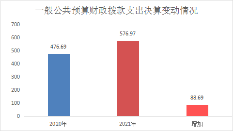 2021年一般公共预算财政拨款支出576.97万元,占本年支出合计的100%。与2020年相比,一般公共预算财政拨款支出增加100.28万元,增长21.04%。主要变动原因是人员经费和项目经费增加。