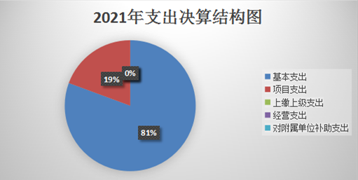 2021年本年支出合计480.17万元,其中:基本支出387.15万元,占80.63%;项目支出93.02万元,占19.37%;上缴上级支出0万元,占0%;经营支出0万元,占0%;对附属单位补助支出0万元,占0%。