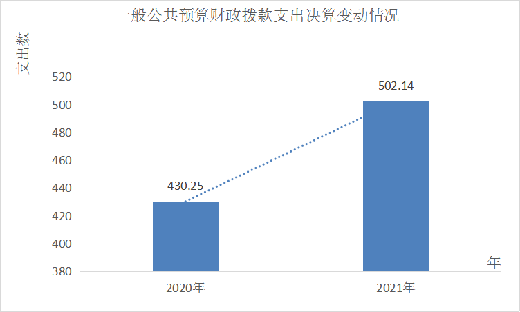 2021年一般公共预算财政拨款支出502.14万元,占本年支出合计的100%。与2020年相比,一般公共预算财政拨款支出增加71.89万元,增加16.71%。主要变动原因是新增人员。