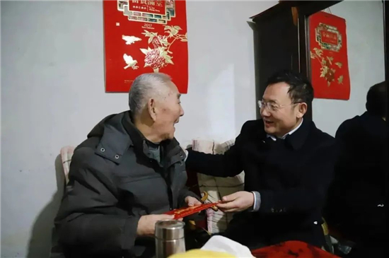 1月16日,农历腊月廿五,红城大地张灯结彩,处处洋溢着节日的喜庆气氛。县委书记唐文辉带队深入东河镇多个社区,看望慰问离休干部、老党员和离休干部遗孀,代表县委、县政府向他们送去党和政府的关怀与温暖,并通过他们向全县老干部和老党员致以节日的问候。
