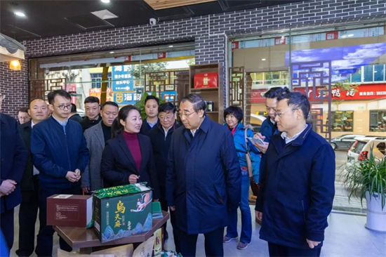 丛斌一行先后赴旺苍县东河镇福临村黄茶产业园区、福临村村委会、“水磨山货”门市调研黄茶产业、乡村建设和村集体经济发展情况。