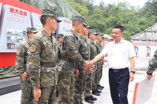 7月31日,县委副书记、县长杜非带队走访慰问退役军人、县武警中队官兵,向他们致以节日的祝贺和亲切的问候。