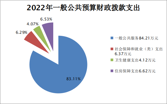 2022年一般公共预算财政拨款支出101.32万元,主要用于以下方面:一般公共服务支出84.21万元,占83.11%;教育支出0万元,占0%;科学技术支出0万元,占0%;文化旅游体育与传媒支出0万元,占0%;社会保障和就业支出6.37万元,占6.29%;卫生健康支出4.12万元,占4.07%;住房保障支出6.62万元,占6.53%。