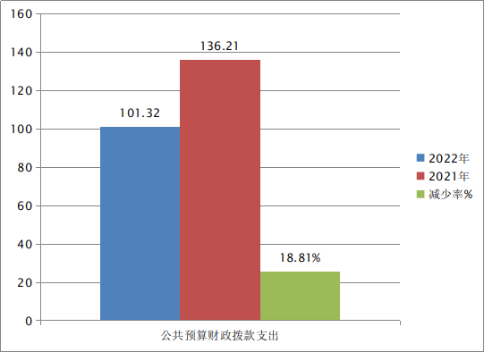 2022年一般公共预算财政拨款支出101.32万元,占本年支出合计的100%。与2021年相比,一般公共预算财政拨款支出增减少34.89万元,下降25.61%。主要变动原因是减少了刘和邦的死亡抚恤、人员减少和财政局未拨付的资金(即医疗保险、养老保险、公务接待费、差旅费等)。