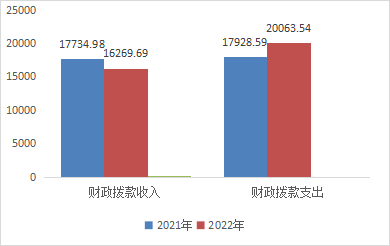 2022年财政拨款收入总计16269.69万元、支出总计20063.54万元。与2021年相比,财政拨款收入总计减少1465.29万元、减少8.26%,支出总计增加2134.95万元,增长11.91%。主要变动原因是新冠肺炎疫情期间,相关费用增加,同时财政专项债资金减少。