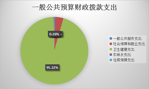 2022年一般公共预算财政拨款支出14637.43万元,主要用于以下方面:一般公共服务支出53.38万元,占0.36%;社会保障和就业支出584.28万元,占3.99%;卫生健康支出13938.17万元,占95.22%;农林水支出23.94万元,占0.16%;住房保障支出37.67万元,占0.26%。