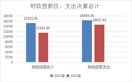 2022年财政拨款收入总计11561.45万元、支出总计14637.43万元。与2021年相比,财政拨款收入总计减少3761.6万元、下降24.55%,支出总计减少1726.91万元,下降10.55%。主要变动原因是县中医医院和县妇幼保健院进行独立决算,同时财政债券资金减少。