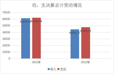 2022年度收入总计44550.17万元、支出总计47626.15万元。与2021年相比,收入总计减少16984.52万元、下降27.6%,支出总计减少14556.51万元,下降23.41%。主要变动原因是县中医医院和县妇幼保健院进行独立决算,同时财政债券资金减少。