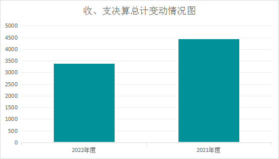2022年度收、支总计3412.84万元。与2021年相比,收、支总计各减少1059.25万元,减少23.68%。主要变动原因1、是减少了公共能力提升项目经费,2、是减少了公共卫生体系建设和重大疫情防控救助体系建设项目。