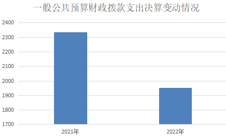 2022年一般公共预算财政拨款支出1951.35万元,占本年支出合计的100%。与2021年相比,一般公共预算财政拨款支出减少382.55万元,下降16.4%。主要变动原因是人员减少。