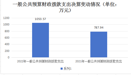 2022年一般公共预算财政拨款支出1053.57万元,占本年支出合计的100%。与2021年相比,一般公共预算财政拨款支出增加265.64万元,增长33.71%。主要变动原因是人员人数增加,各项支出增加。