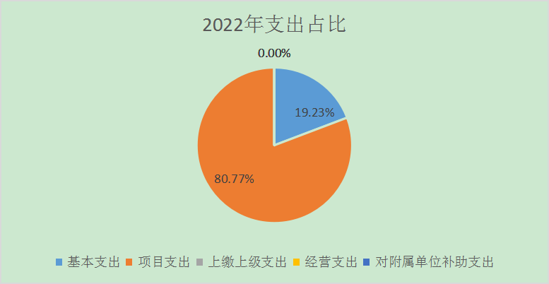 2022年本年支出合计2547.97万元,其中:基本支出490.10万元,占19.23%;项目支出2057.87万元,占80.77%;上缴上级支出0万元,占0.00%;经营支出0万元,占0.00%;对附属单位补助支出0万元,占0.00%。