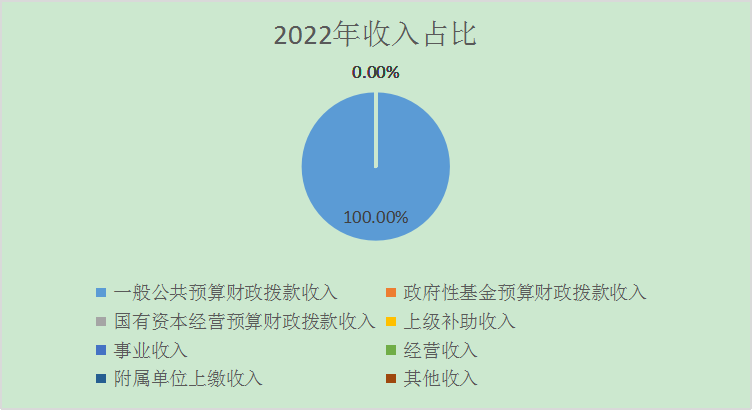 2022年本年收入合计2528.41万元,其中:一般公共预算财政拨款收入2528.41万元,占100%;政府性基金预算财政拨款收入0万元,占0.00%;国有资本经营预算财政拨款收入0万元,占0.00%;上级补助收入0万元,占0%;事业收入0万元,占0.00%;经营收入0万元,占0.00%;附属单位上缴收入0万元,占0.00%;其他收入0万元,占0.00%。