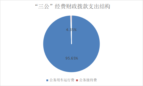 2022年“三公”经费财政拨款支出决算中,因公出国(境)费支出决算0万元,占0%;公务用车购置及运行维护费支出决算431万元,占99.7%;公务接待费支出决算1.26元,占0.3%。具体情况如下: