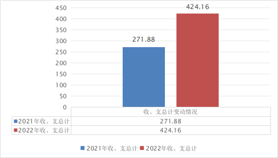 2022年度收、支总计424.16万元。与2021年相比,收、支总计各增加152.28万元,增长35.9%。主要变动原因是项目经费增加。