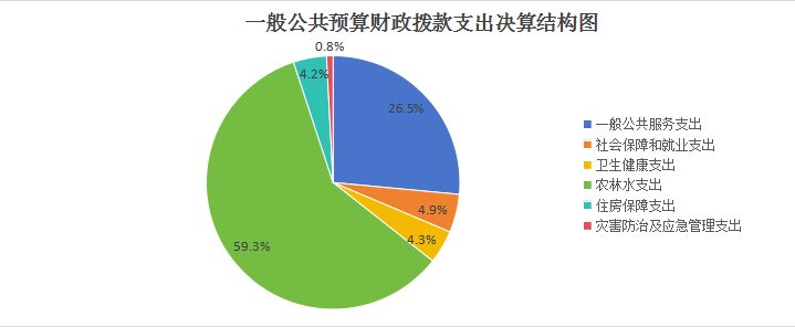 2022年一般公共预算财政拨款支出1,068.22万元,主要用于以下方面: 一般公共服务支出282.96万元,占26.5%;外交支出0万元,占0%;国防支出0万元,占0%;公共安全支出0万元,占0%;教育支出0万元,占0%;科学技术支出0万元,占0%;文化体育与传媒支出0万元,占0%;社会保障和就业支出52.16万元,占4.9%;卫生健康支出45.43万元,占4.3%;节能环保支出0万元,占0%;城乡社区支出0万元,占0%;农林水支出633.75万元,占59.3%;交通运输支出0万元,占0%;资源勘探工业信息等支出0万元,占0%;商业服务业等支出0万元,占0%;金融支出0万元,占0%;援助其他地区支出0万元,占0%;自然资源海洋气象等支出0万元,占0%;住房保障支出45.14万元,占4.2%;粮油物资储备支出0万元,占0%;国有资本经营预算支出0万元,占0%;灾害防治及应急管理支出8.78万元,占0.8%;其他支出0万元,占0%;债务还本支出0万元,占0%;债务付息支出0万元,占0%;抗疫特别国债安排的支出0万元,占0%。