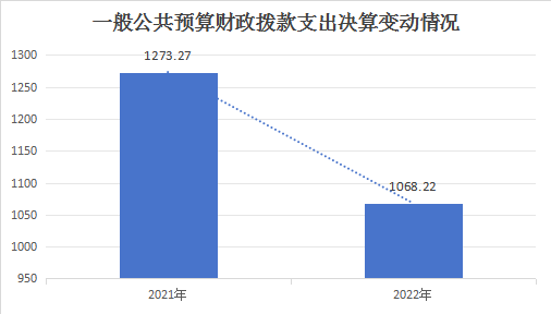 2022年一般公共预算财政拨款支出1,068.22万元,占本年支出合计的100%。与2021年相比,一般公共预算财政拨款支出减少205.01万元,下降16.1%。主要变动原因是人员增减、项目减少。