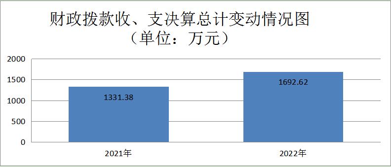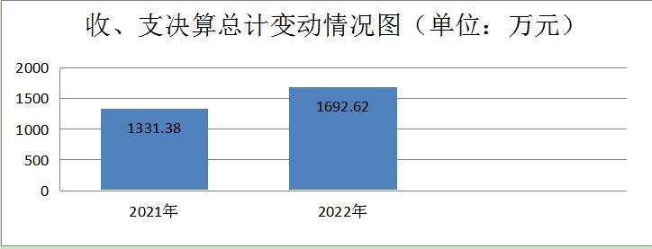 2022年度收、支总计1692.62万元。与2021年相比,收、支总计各增加361.24万元,增长27.13%。主要变动原因是增加乡镇纪检监察组织安全谈话场所建设项目经费、大要案查处专项经费。