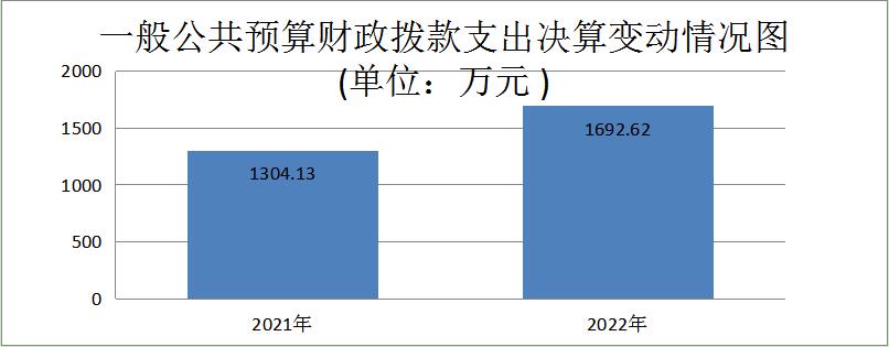 2022年一般公共预算财政拨款支出1692.62万元,主要用于以下方面:一般公共服务支出1480万元,占87.44%;社会保障和就业支出99.88万元,占5.9%;卫生健康支出44.98万元,占2.66%;住房保障支出67.76万元,占4%。