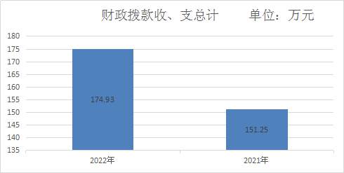 2022年度收、支总计174.93万元。与2021年相比,收、支总计各增加23.68万元,增长15.66%。主要变动原因是单位新增事业人员1名、正常调资、目标绩效奖增加、增加县巩固拓展脱贫攻坚成果同乡村振兴有效衔接督促检查组基本业务经费等。