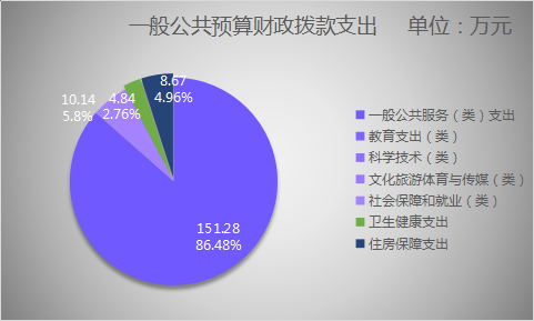 2022年一般公共预算财政拨款支出174.93万元,主要用于以下方面:一般公共服务支出151.28万元,占86.48%;教育支出0万元,占0%;科学技术支出0万元,占0%;文化旅游体育与传媒支出0万元,占0%;社会保障和就业支出10.14万元,占5.8%;卫生健康支出4.84万元,占2.76%;住房保障支出8.67万元,占4.96%。