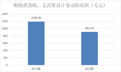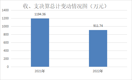 2022年度收、支总计911.74万元。与2021年相比,收、支总计各减少282.62万元,下降23.66%。主要变动原因是项目支出减少。