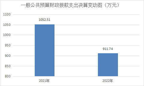 2022年一般公共预算财政拨款支出911.74万元,占本年支出合计的100%。与2021年相比,一般公共预算财政拨款支出减少140.77万元,下降13.37%。主要变动原因是项目支出减少。