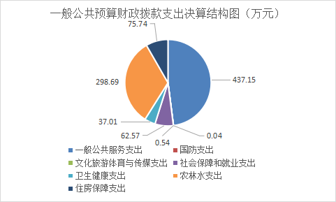 2022年一般公共预算财政拨款支出911.74万元,主要用于以下方面:一般公共服务支出437.15万元,占47.947%;国防支出0.54万元,占0.059%;文化旅游体育与传媒支出0.04万元,占0.004%;社会保障和就业支出62.57万元,占6.863%;卫生健康支出37.01万元,占4.059%;农林水支出298.69万元,占32.761%;住房保障支出75.74万元,占8.307%。
