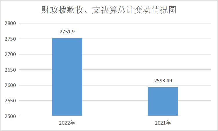 2022年财政拨款收、支总计2751.90万元。与2021年相比,财政拨款收、支总计各增加158.41万元,增长6.11%。主要变动原因是人员基础绩效工资增加。