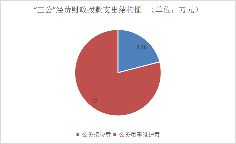 2022年“三公”经费财政拨款支出决算中,因公出国(境)费支出决算0万元,占0%;公务用车购置及运行维护费支出决算32.00万元,占79.05%;公务接待费支出决算8.48万元,占20.95%。具体情况如下: