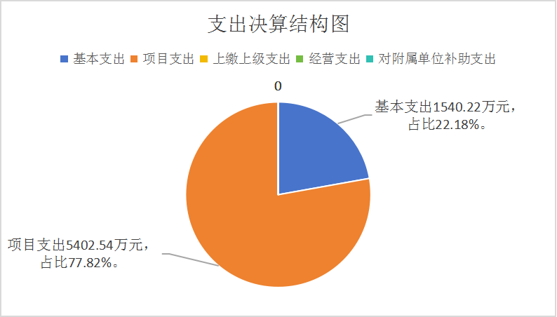 2022年本年支出合计6942.76万元,其中:基本支出1540.22万元,占22.18%;项目支出5402.54万元,占77.82%。