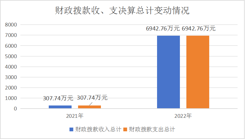 2022年财政拨款收、支总计6942.76万元。与2021年相比,财政拨款收、支总计各增加6635.02万元,增长2156.05%。主要变动原因是2022年旺苍县社会保险事业管理局、旺苍县机关事业单位社会保险局、旺苍县城乡居民社会养老保险局合并成立旺苍县社会保险事务中心,人员经费、公用经费及项目经费全年预算均增加。