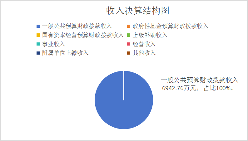 2022年本年收入合计6942.76万元,其中:一般公共预算财政拨款收入6942.76万元,占100%。