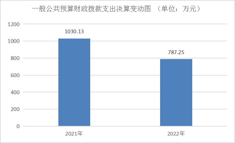 2022年一般公共预算财政拨款支出787.25万元,占本年支出合计的100%。与2021年相比,一般公共预算财政拨款支出减少242.88万元,下降23.58%。主要变动原因是一是2022年无三支一扶人员经费支出;二是2022年无网络租赁费预算。