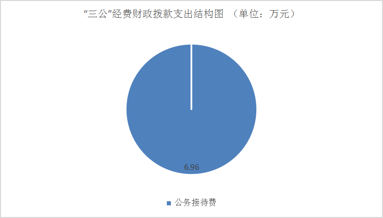 2022年“三公”经费财政拨款支出决算中,因公出国(境)费支出决算0万元,占0%;公务用车购置及运行维护费支出决算0万元,占0%;公务接待费支出决算6.96万元,占100%。具体情况如下: