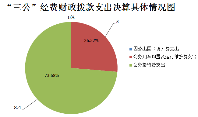 2022年“三公”经费财政拨款支出决算中,因公出国(境)费支出决算0万元,占0%;公务用车购置及运行维护费支出决算3万元,占26.32%;公务接待费支出决算8.4万元,占73.68%。具体情况如下: