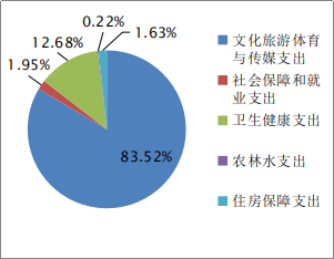2022年一般公共预算财政拨款支出625.34万元,主要用于以下方面:文化旅游体育与传媒支出522.28万元,占83.52%;社会保障和就业支出12.22万元,占1.95%;卫生健康支出79.28万元,占12.68%;农林水支出1.36万元,占0.22%;住房保障支出10.2万元,占1.63%。