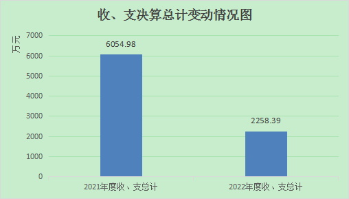 2022年度收入总计2258.39万元、支出总计2258.39万元。与2021年相比,收入总计减少3796.59万元、下降63%,主要变动原因是科技项目资金减少。与2021年相比,支出总计各减少3796.59万元,下降63%。主要变动原因是科技项目资金减少。