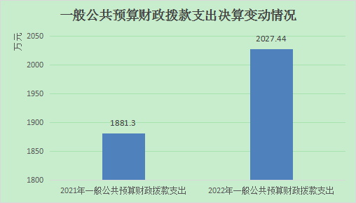 2022年一般公共预算财政拨款支出2027.44万元,占本年支出合计的90%。与2021年相比,一般公共预算财政拨款支出增加146.14万元,增长8%。主要变动原因是人员增加和解决历史遗留问题资金增加。