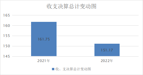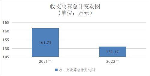 2022年度收支总计151.17万元。与2021年相比,收、支总计各减少10.58万元,下降6.54%。主要变动原因是上级专项资金投入减少。