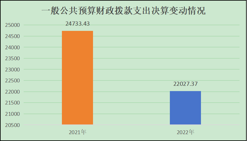 2022年一般公共预算财政拨款支出22027.37万元,占本年支出合计的72.73%。与2021年相比,一般公共预算财政拨款支出减少2706.06万元,下降10.94%。主要变动原因是不含上年度结转资金。