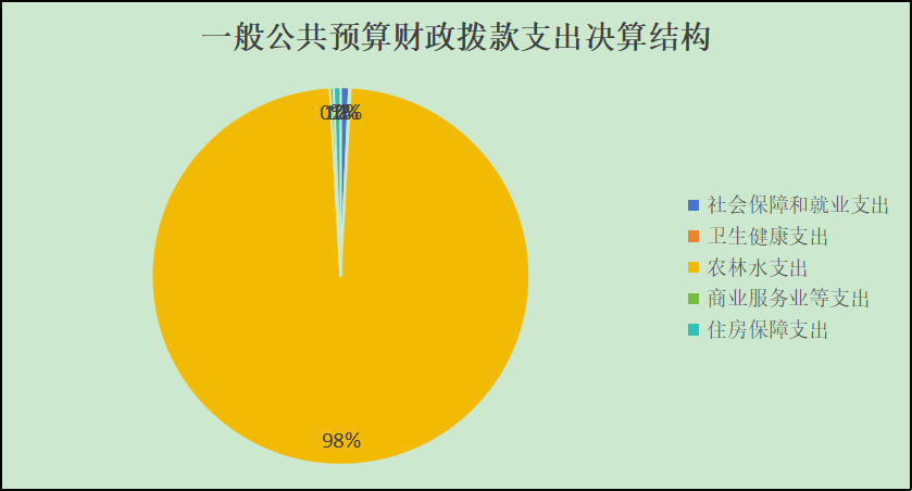 2022年一般公共预算财政拨款支出22027.37万元,主要用于以下方面:社会保障和就业支出160.12万元,占0.73%;卫生健康支出27.73万元,占0.13%;农林水支出21640.97万元,占98.24%;商业服务业等支出69.06万元,占0.31%;住房保障支出129.49万元,占0.59%。