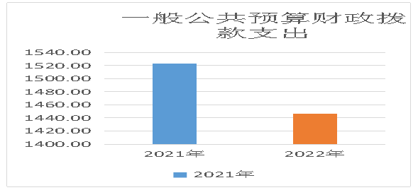 2022年一般公共预算财政拨款支出1446.76万元,占本年支出合计的100%。与2021年相比,一般公共预算财政拨款减少了75.77万元,降低4.98 %。主要变动原因是2022年人员退休和降低项目成本。