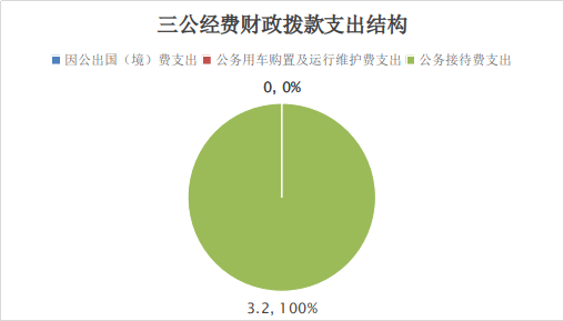 2022年“三公”经费财政拨款支出决算中,因公出国(境)费支出决算0万元,占0%;公务用车购置及运行维护费支出决算0万元,占0%;公务接待费支出决算3.2万元,占100%。具体情况如下: