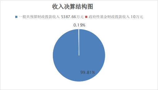 2022年本年收入合计5397.66万元,其中:一般公共预算财政拨款收入5387.66万元,占99.81%;政府性基金预算财政拨款收入10万元,占0.19%。