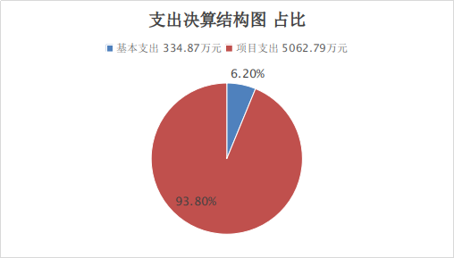 2022年本年支出合计5397.66万元,其中:基本支出334.87万元,占6.20%;项目支出5062.79万元,占93.80%。